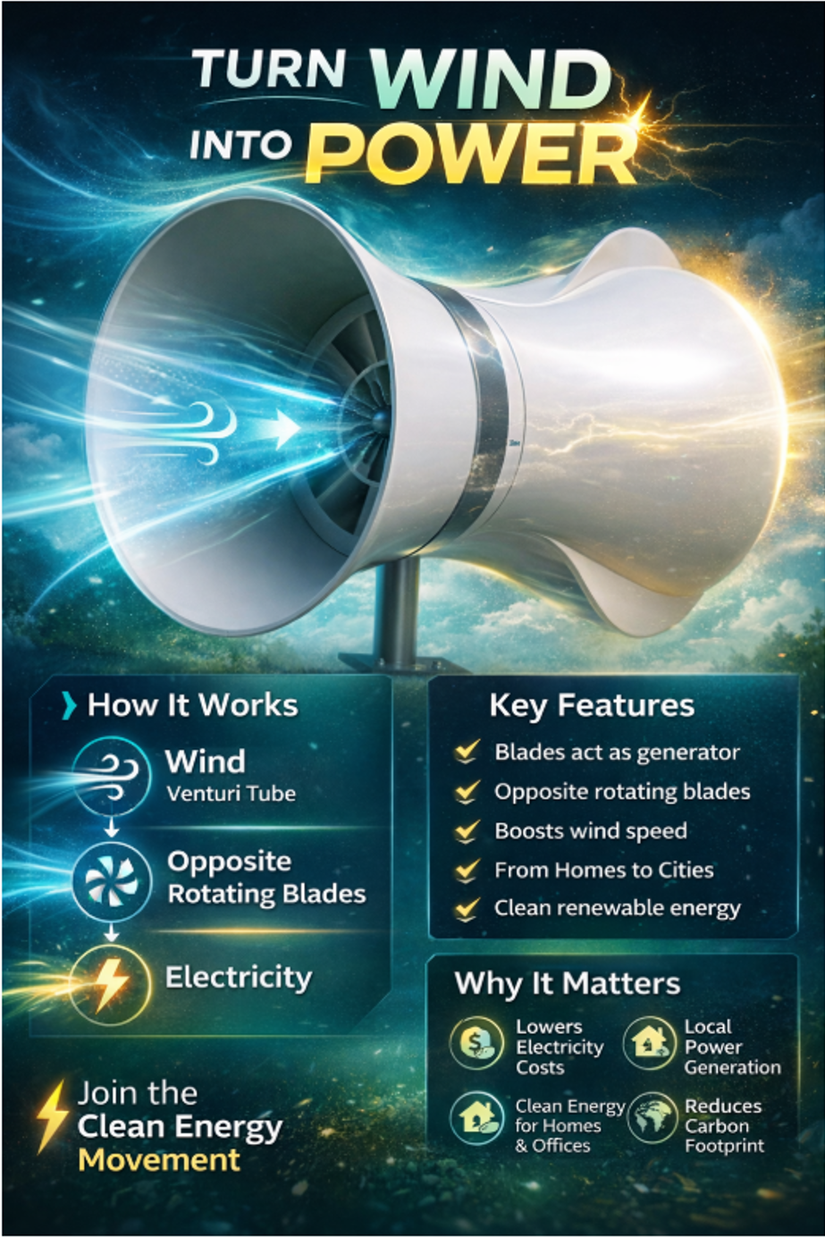 Will be a range of wind turbines that can be used on a home or a commercial establishment. We don't exist yet, we are just raising finance to build prototypes. The final wind turbines will be for home and commercial use. Green energy produced where it is needed.